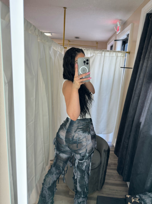 Distressed Mesh Pants